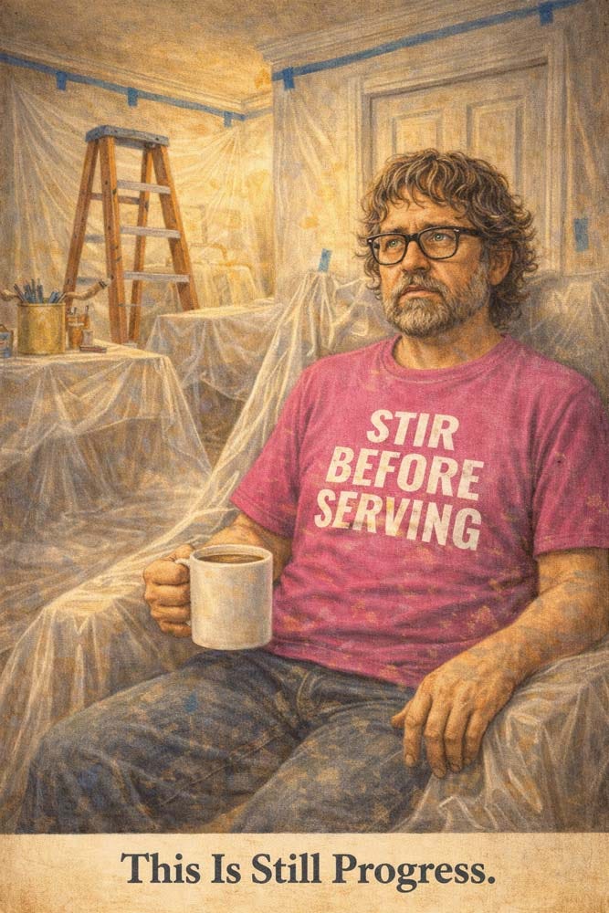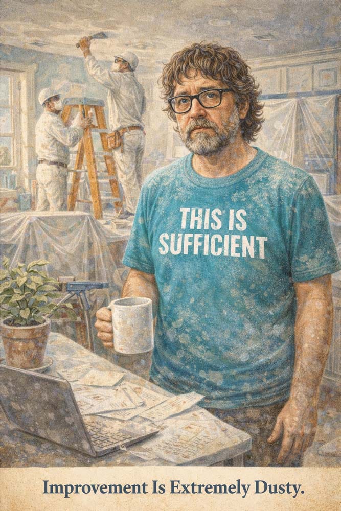 What is happening here feels more like emotional drywall dust. Things are technically improving, but also I am itchy, tired, and unable to find anything I need.