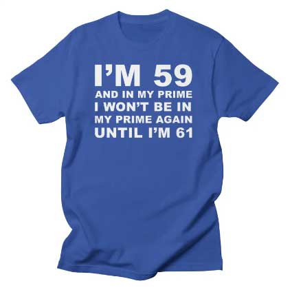 If you happen to be a prime number yourself this year—19, 23, 29, 31, 37, 41, 43, 47, 53, 59, 61, 67, 71, 73, 79, 83, 89, 97, 101, 103, 107, 109, or 113—consider commemorating the course with a prime-age t-shirt. They pair well with wisdom and cake.